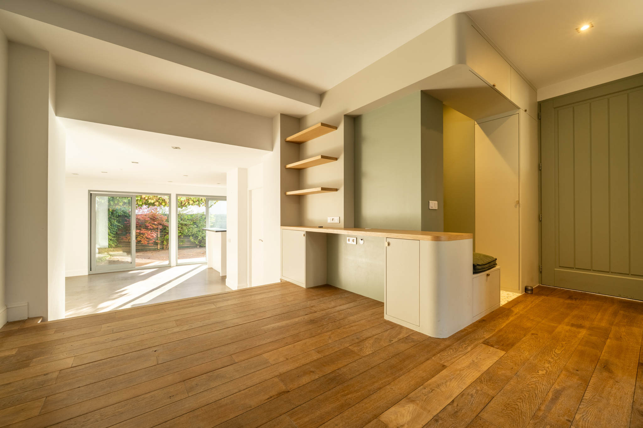 -1er étage : dégagement avec espace bureau, dressing, bureau, 2 chambres, salle de bains avec WC.