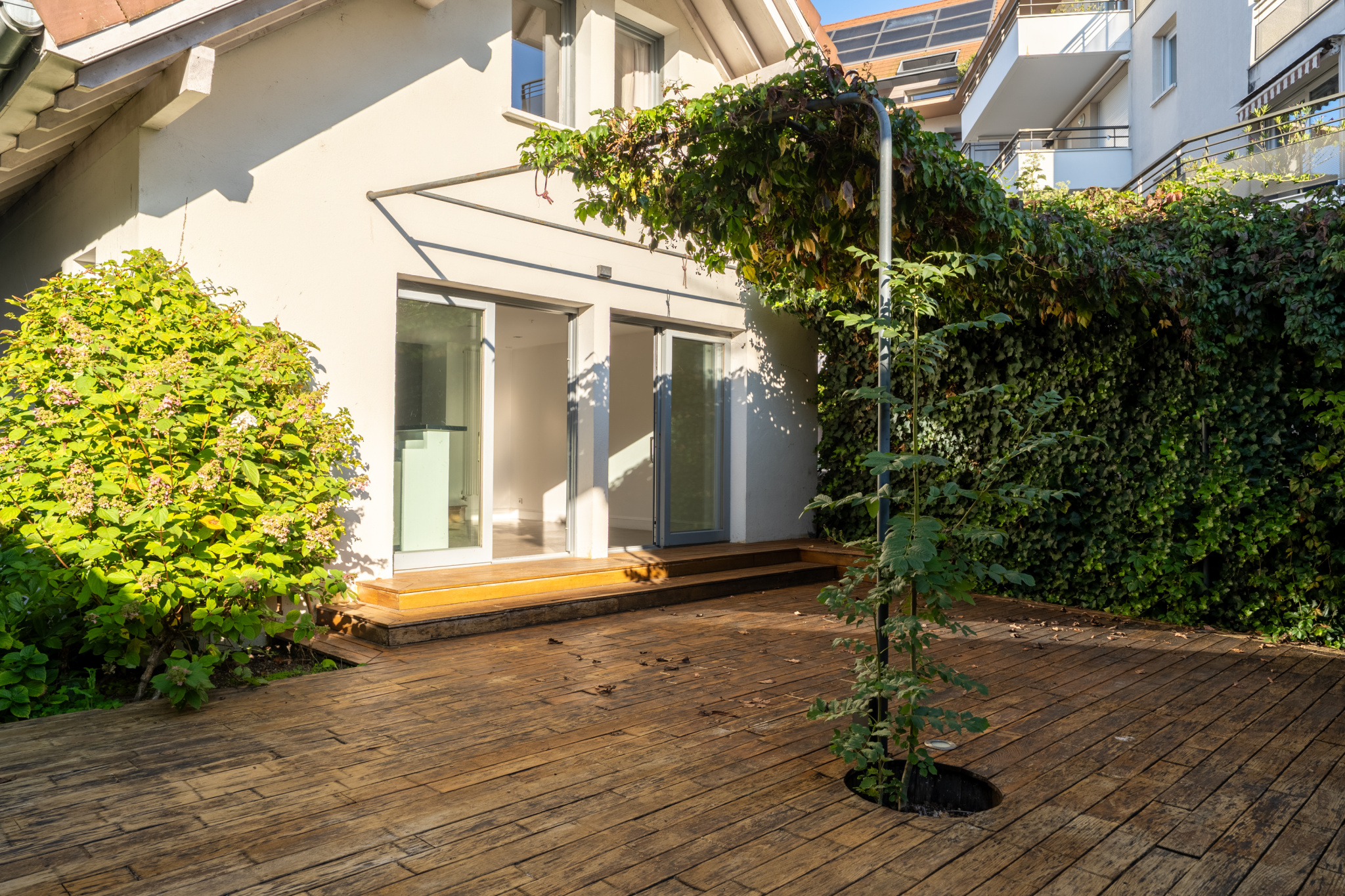 Véritable compromis maison / appartement, cette maison de ville des années 50 a été entièrement rénovée et se développe sur 4 niveaux :