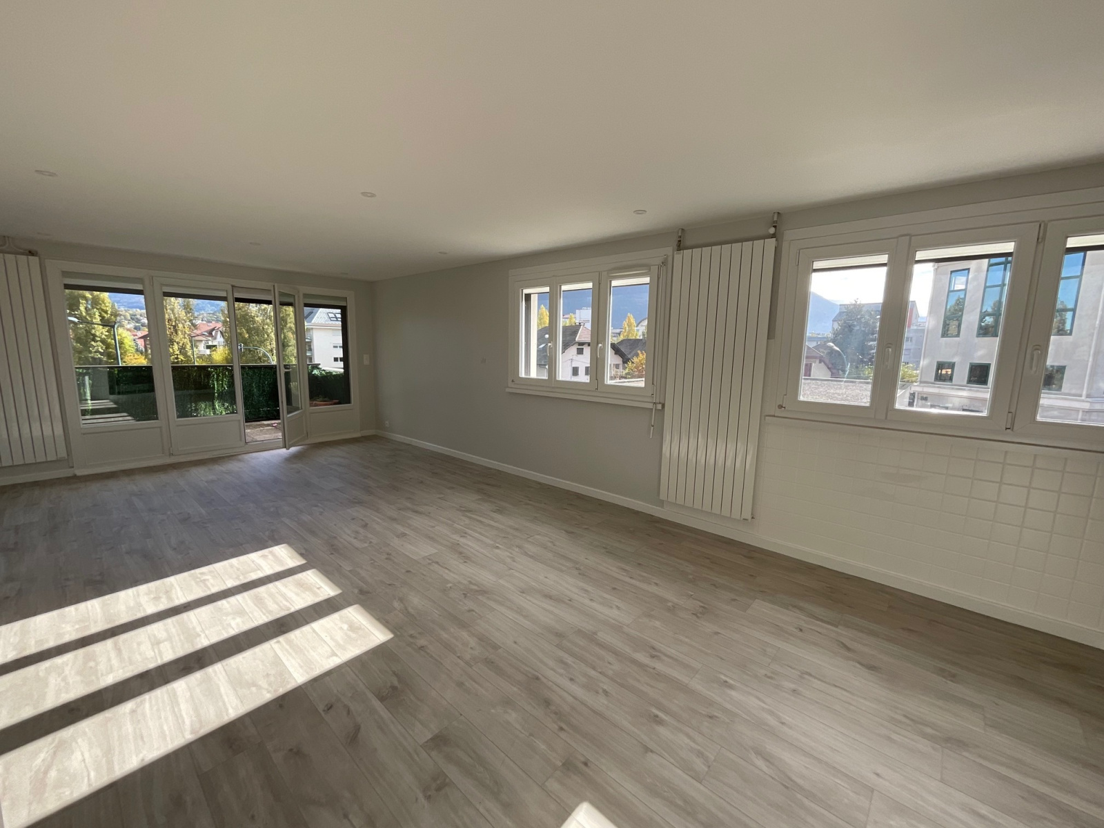 Annecy (74000)Nouveau en exclusivité, superbe T3 traversant refait à neuf, d'une superficie de 76,65m2 idéalement situé à Annecy, au 2ème étage avec ascenseur , à 10min à pied du lac, avec un bel espace de vie comprenant une cuisine donnant sur une terrasse de plus de 19m2, 2 chambres,1 salle de bain et une cave.