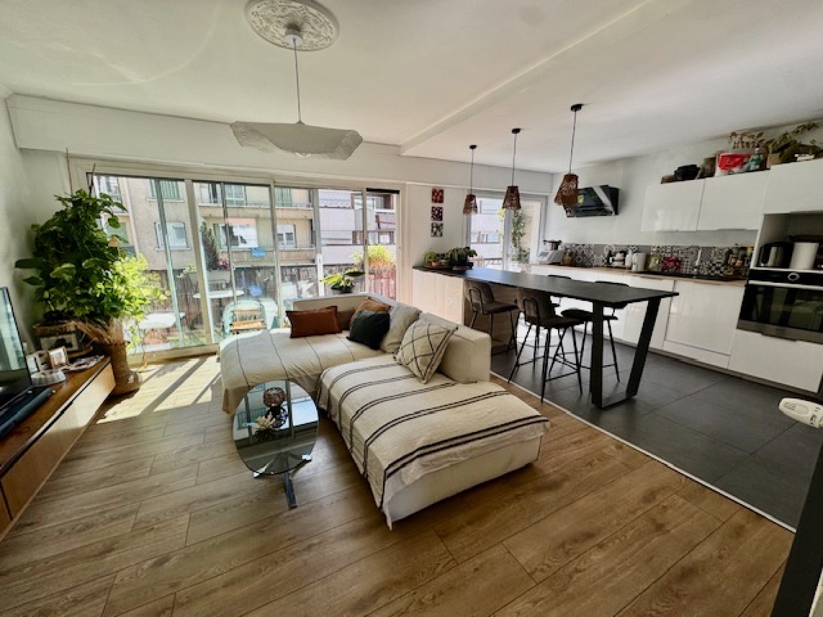 Annecy (74000)Nouveau ! Centre ville d'Annecy, au 4ième étage avec ascenseur , découvrez ce T3 "cosy" de 63m2 environ composé d'une pièce de vie de + de 30m2 avec cuisine équipée ouverte donnant sur balcon, 2 chambres, salle d'eaux et WC. Chauffage gaz de ville collectif, cave en sousn sol et garage en location...