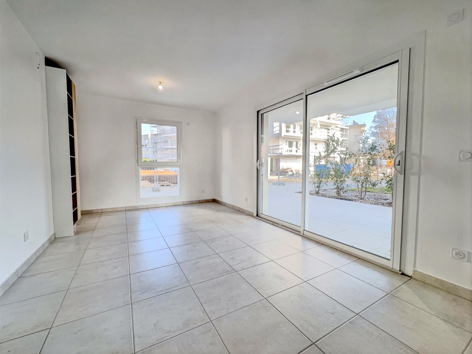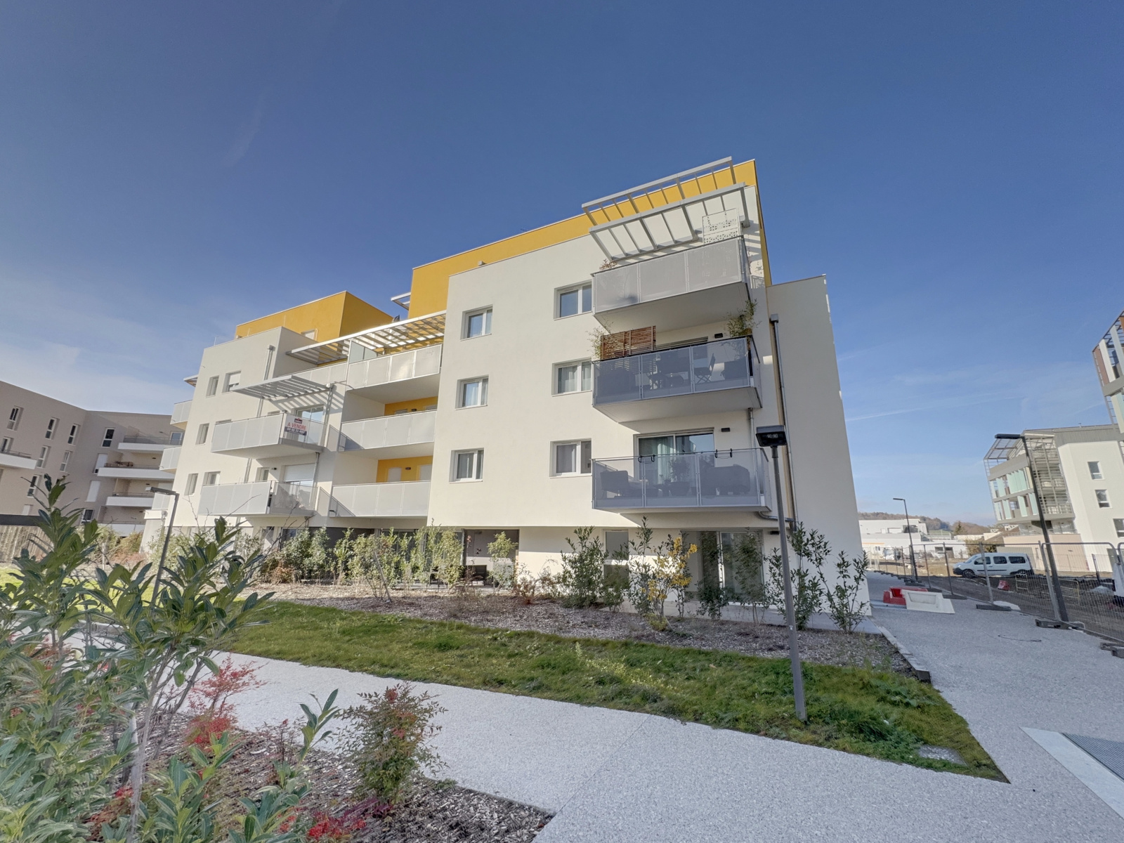 Meythet (74960)Nouveau et en exclusivité sur Meythet! Vaste T2 de 54m2 situé au rez de terrasse d'une résidence de standing de 2023, pièce de vie de 30m2 donnant sur une terrasse de 18m2, cuisine semi-équipée, volets roulants motorisés, chauffage gaz de ville individuel, 2 places de parking privative en sous-sol possible en sus du prix ...