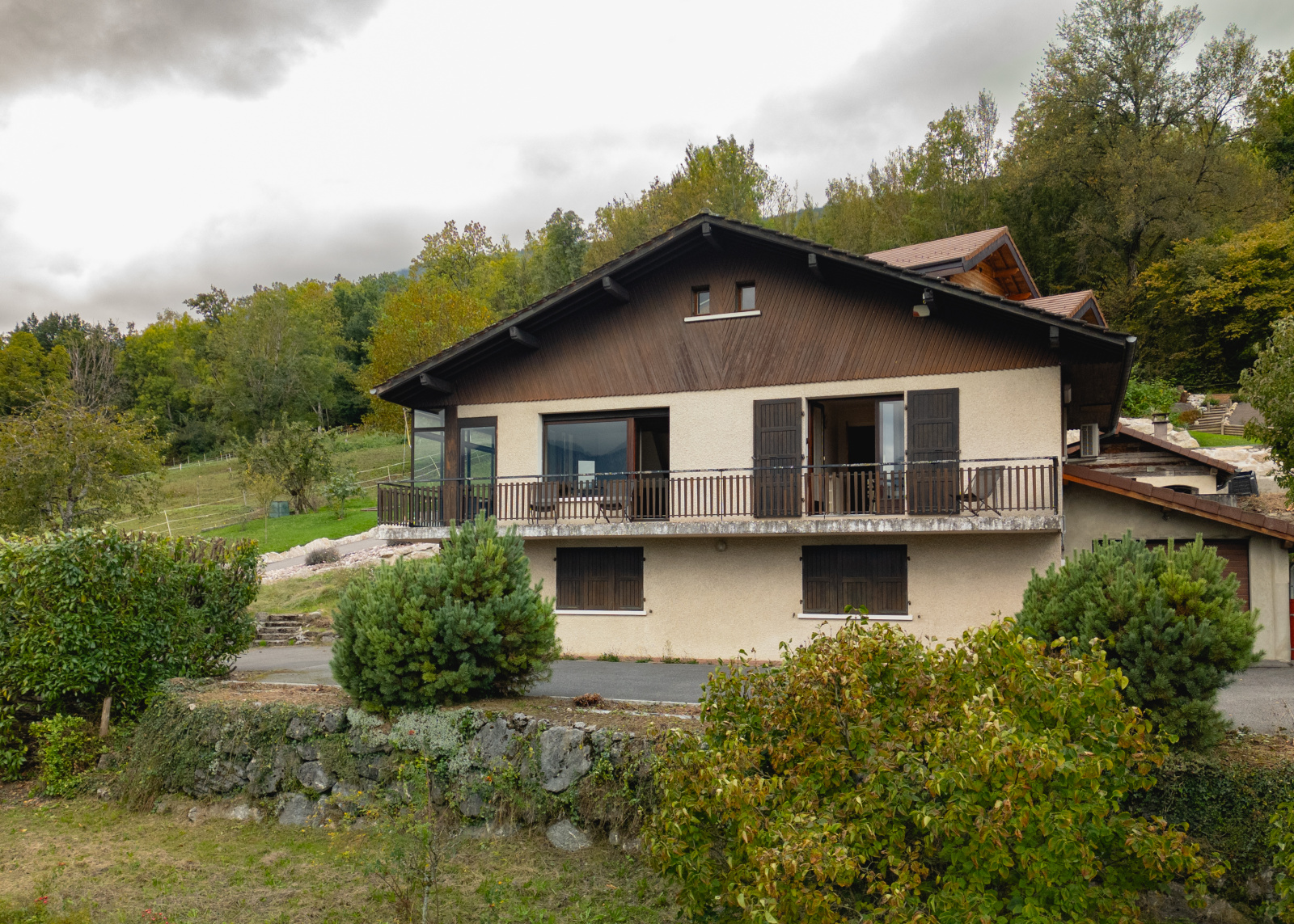 Saint-Jorioz (74410)Nouveau et en exclusivité sur la Rive Ouest! Vue Lac et montagnes imprenable , villa savoyarde nichée sur le plus beau coteau de la rive à Saint Jorioz, édifiée sur 1200m2 de terrain, et développant + de 200m2 de surface construite sur 3 niveaux (150m2 habitable environ), et composée de 4 chambres en l'état actuel.Très fort potentiel de rénovation/extension, 2 garages de 20m2 chacun environ, possibilité de 2 appartements indépendants (1 par niveau), terrasse SUD/OUEST au soleil avec dépendance comportant four à bois et barbecue...Prévoir travaux de rafraichissements et d'embellissements