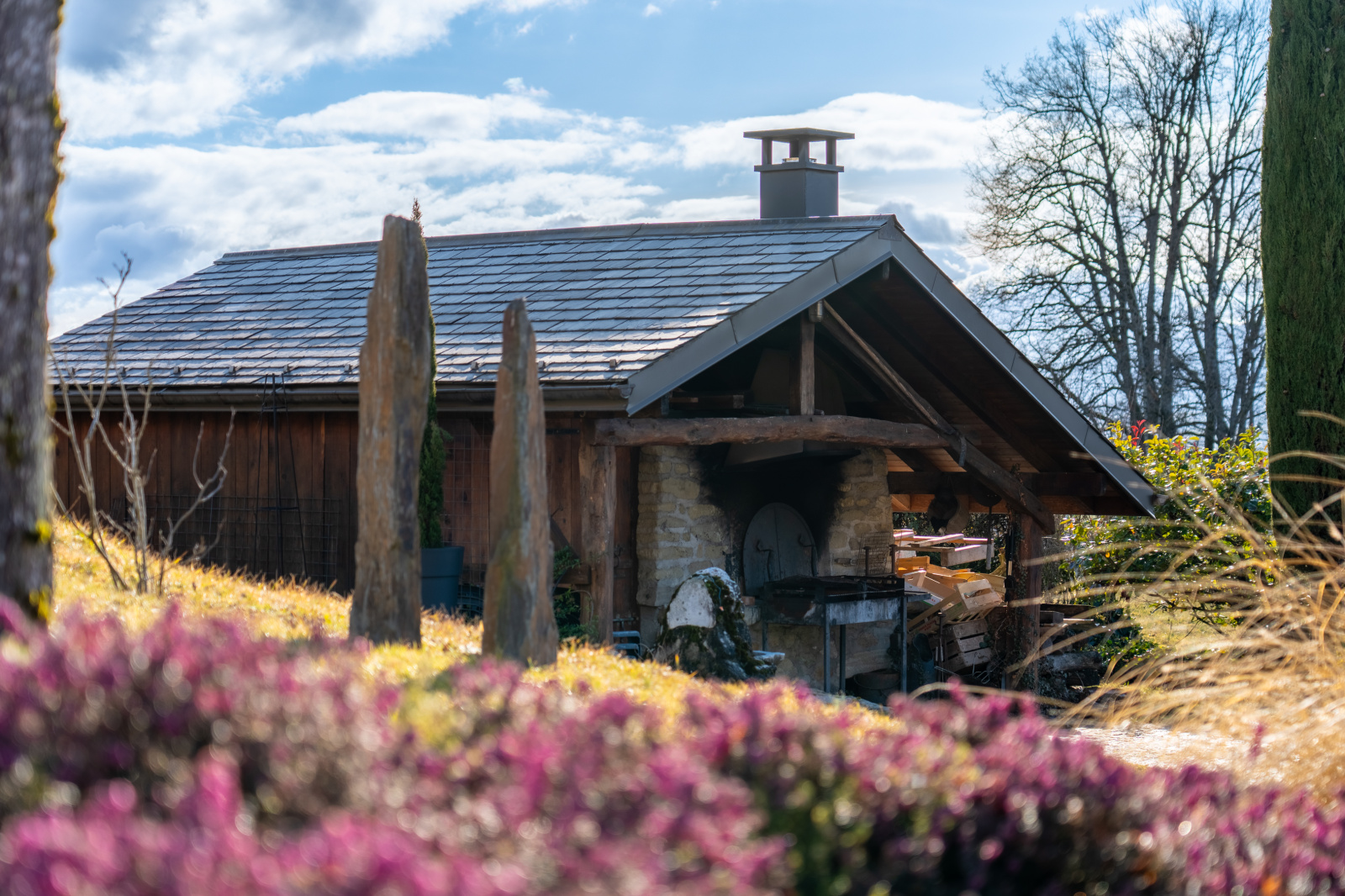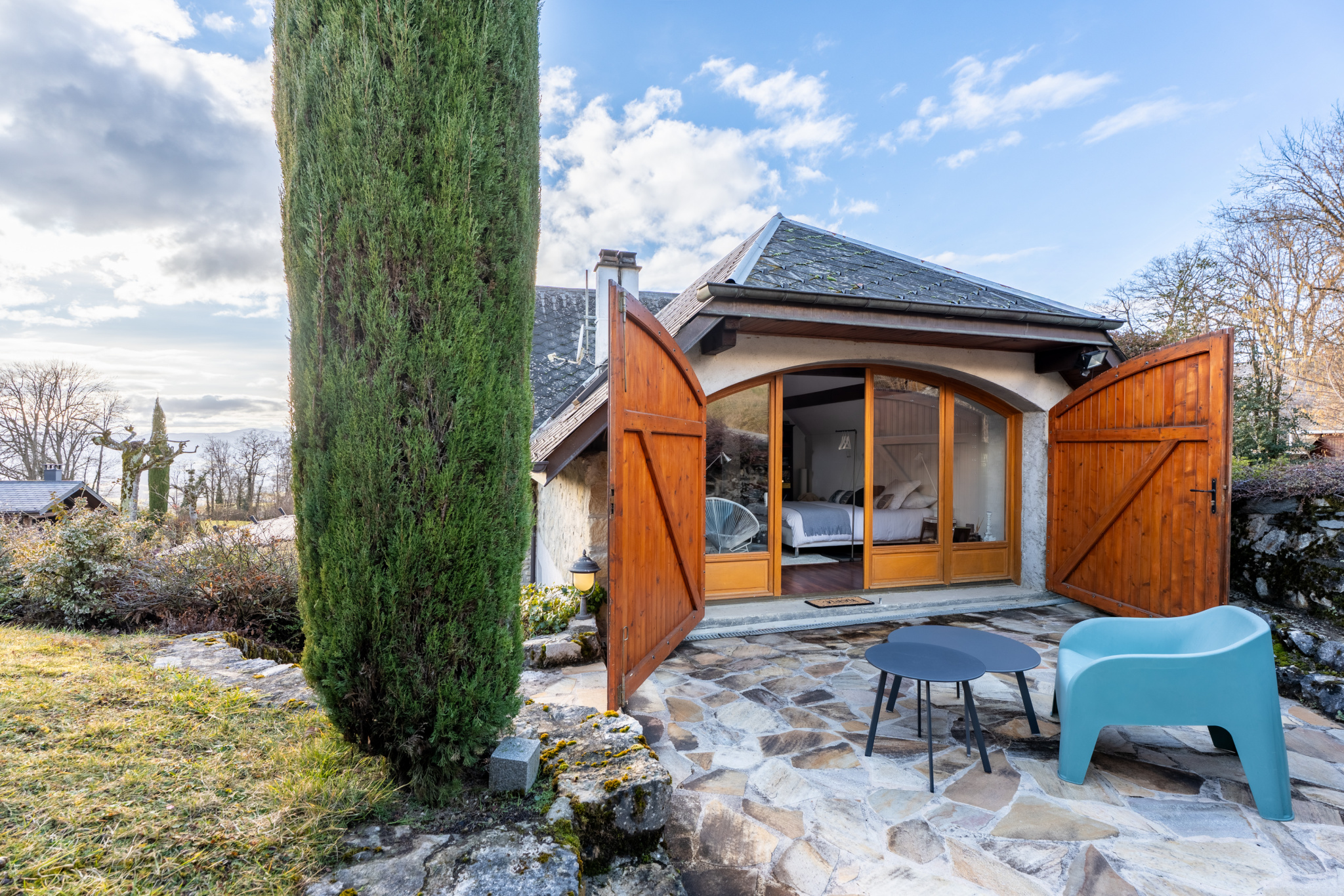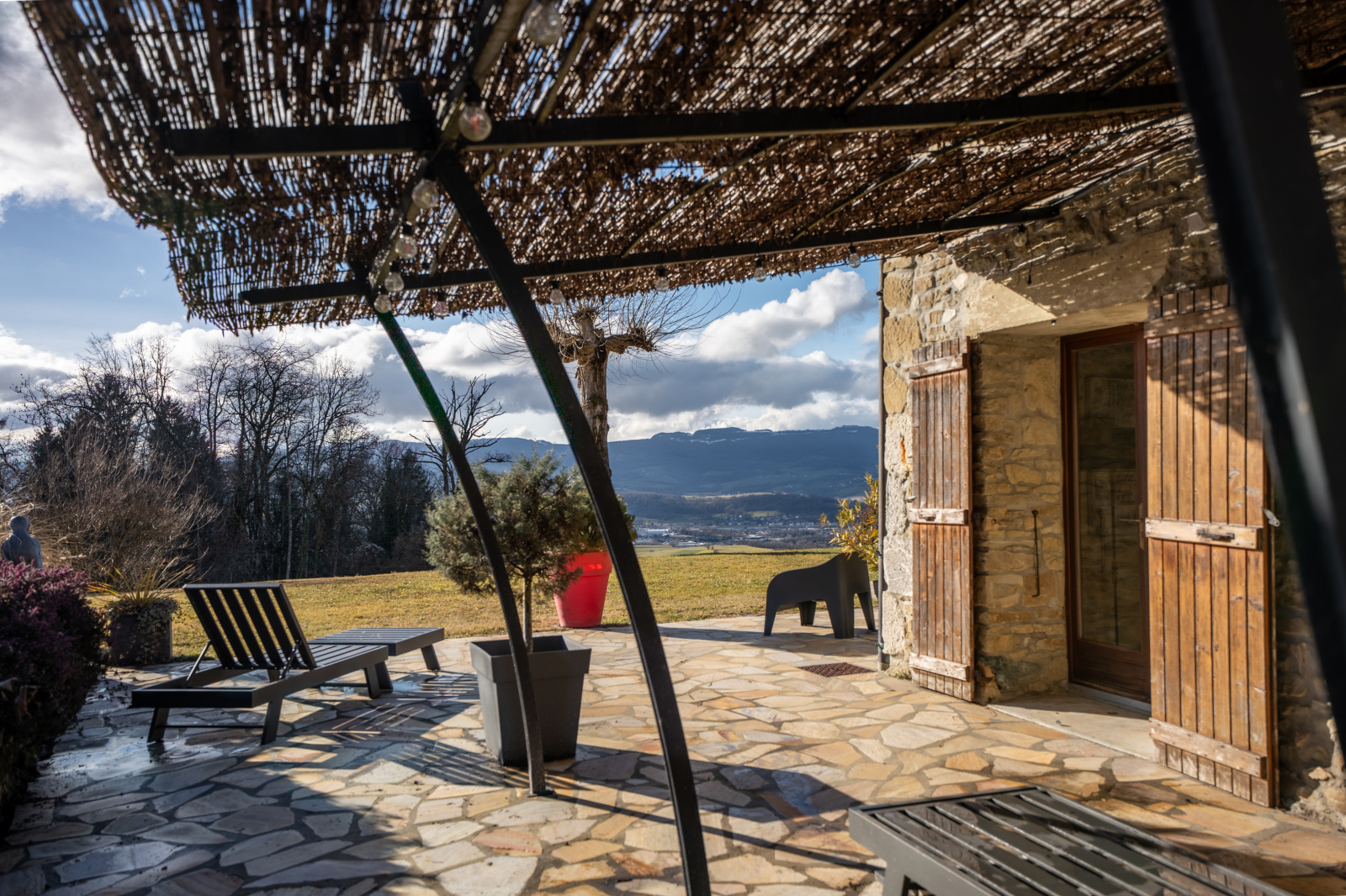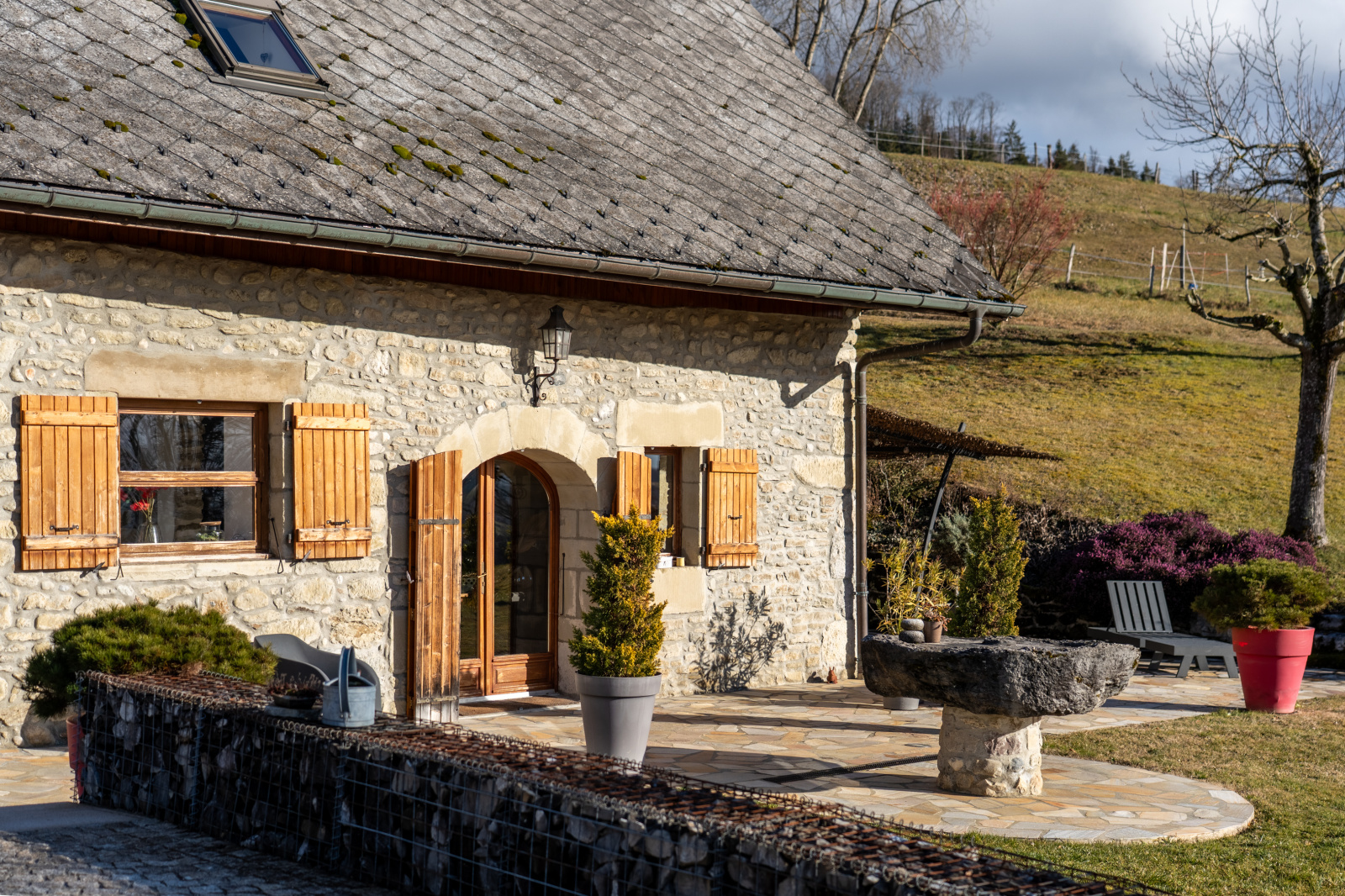 Terrasse en pierres, parfaite pour les repas en extérieur