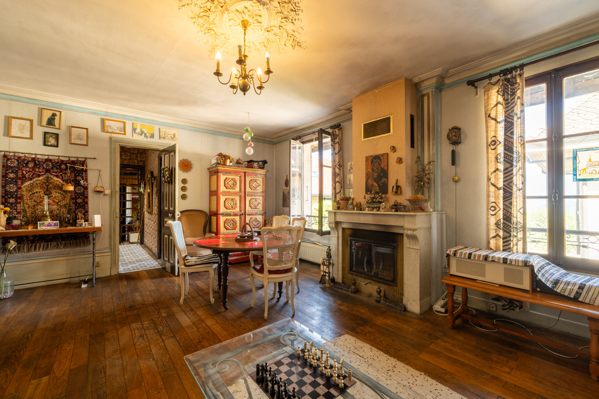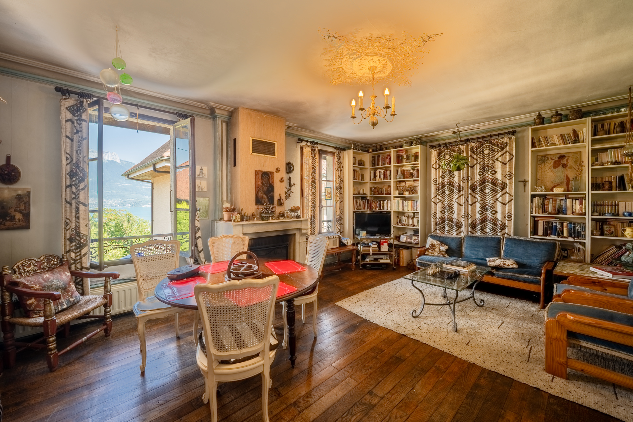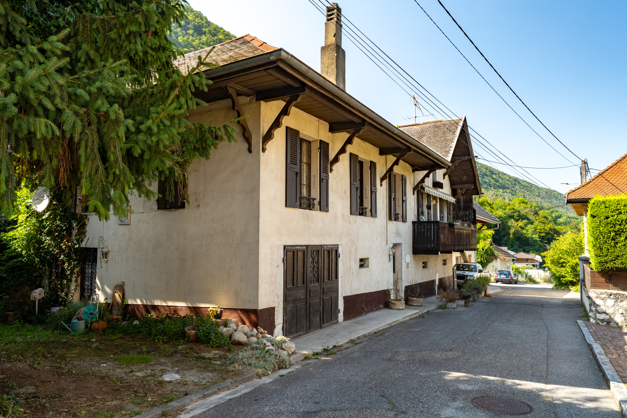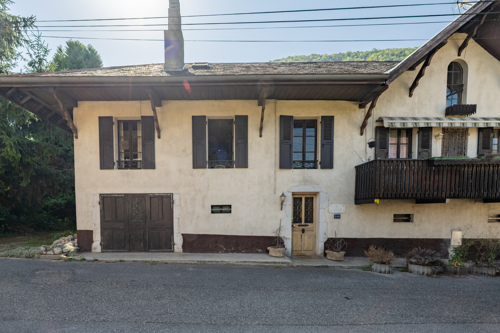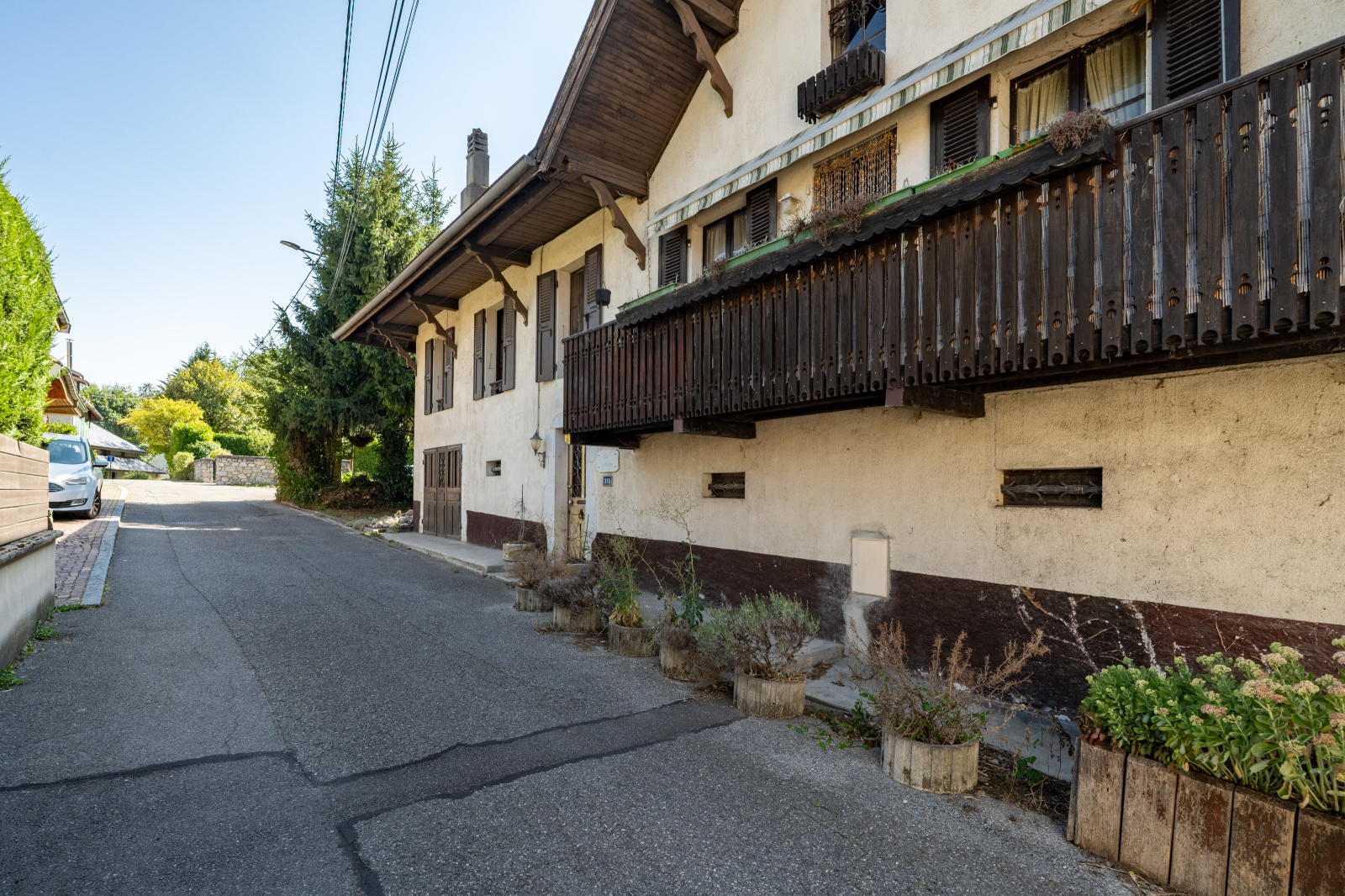 Sévrier (74320)Exclusif! Vue lac et montagnes pour cette maison de ville du 19ième siècle rénovée en 1980 , véritable compromis Maison/appartement, 130m2 habitables , 300m2 de terrain, sur 3 niveaux composée de :
